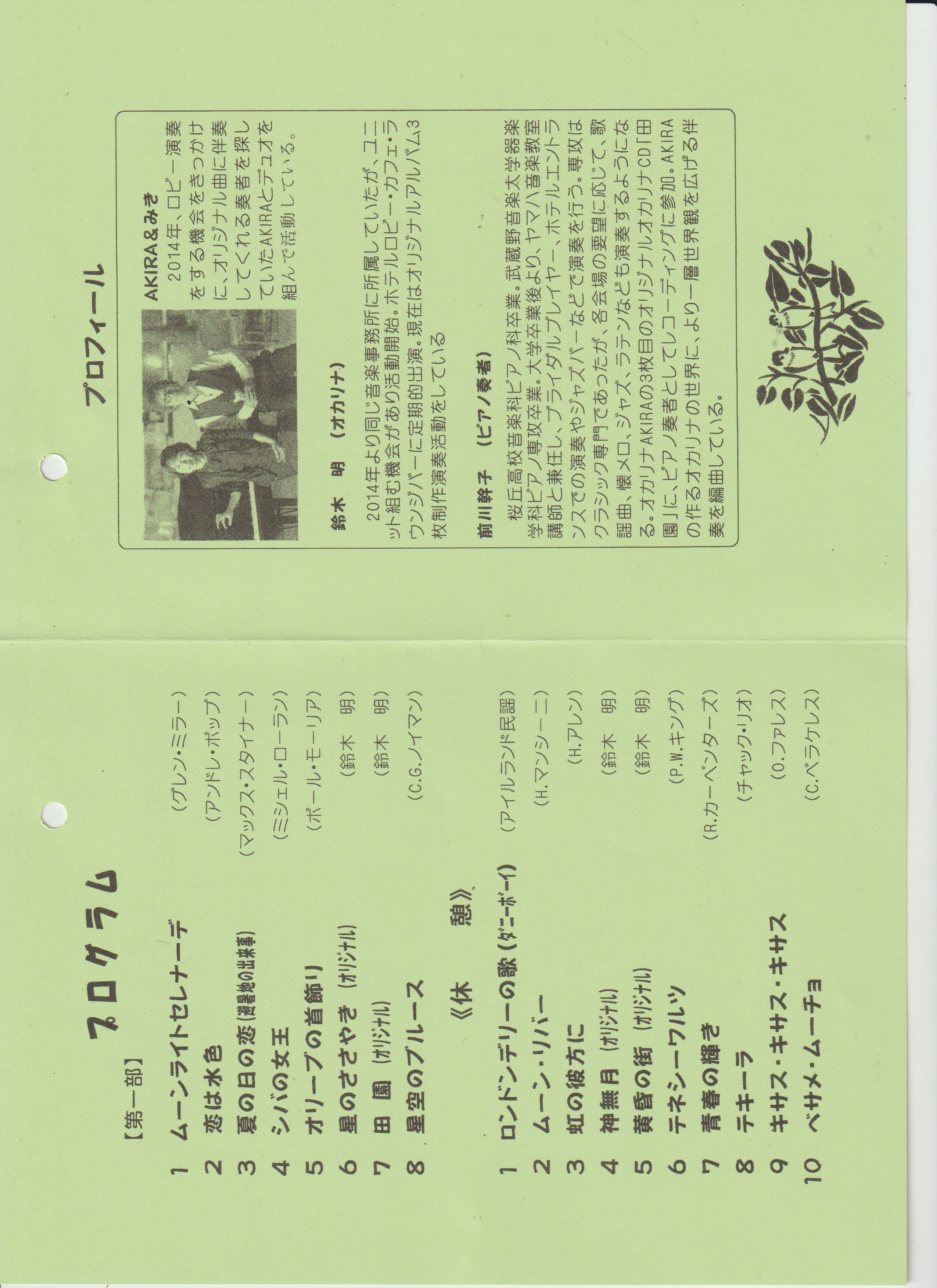 プログラム: ・昭和歌謡からJazzまで お楽しみください!